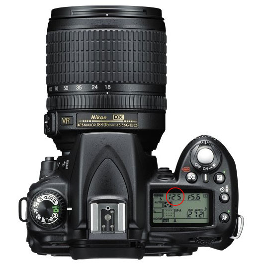 6) Как найти скорость затвора на дисплее? Обычно она находится в левом верхнем углу: