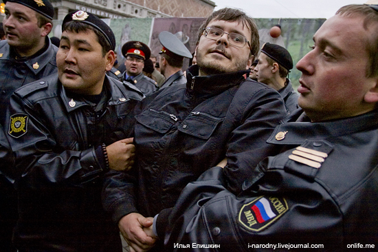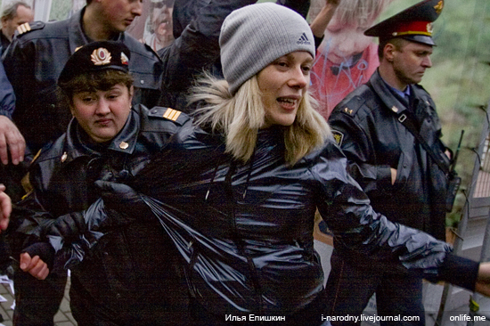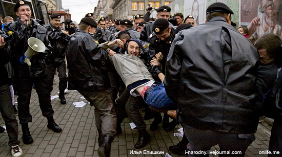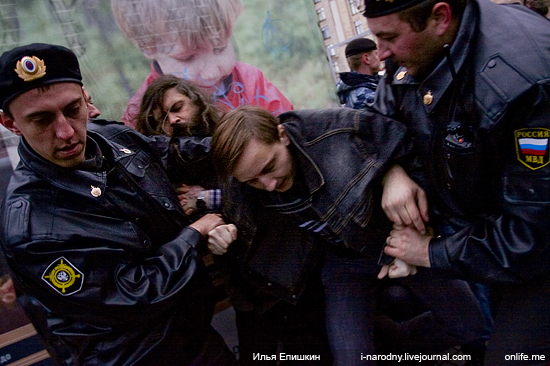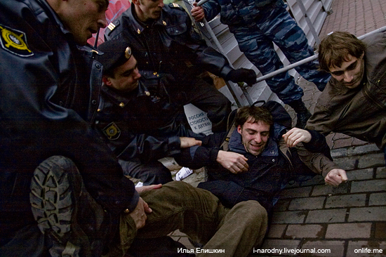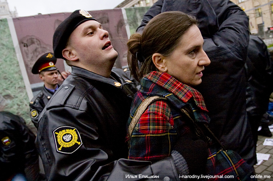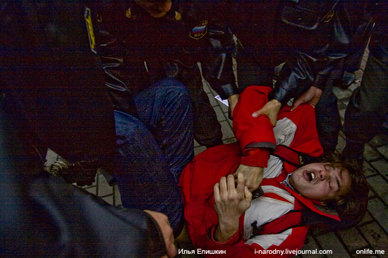 08. Когда сотрудники полиции тащат подопечных особенно выгодно обгонять их на половине пути и двигаться спиной параллельно их движению, картинка получается весьма хорошей, да и большинство журналистов отваливается на пол пути к автозаку.