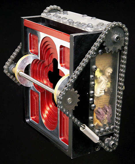Камера «Стрекоза», созданная как алтарь в память о девочке, скончавшейся в возрасте девяти лет. Материалы: сталь, алюминий, акрил, насекомые, цветочные лепестки, старинные игрушки, страницы книг.