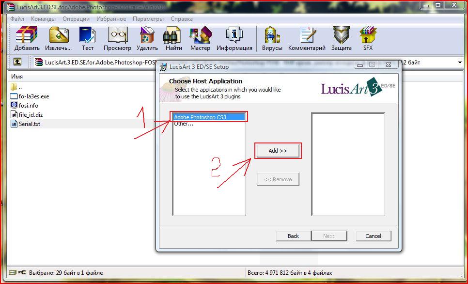 Выбираем фотошоп, нажимаем Add. Получаем, что фотошоп сместился в правое окно: