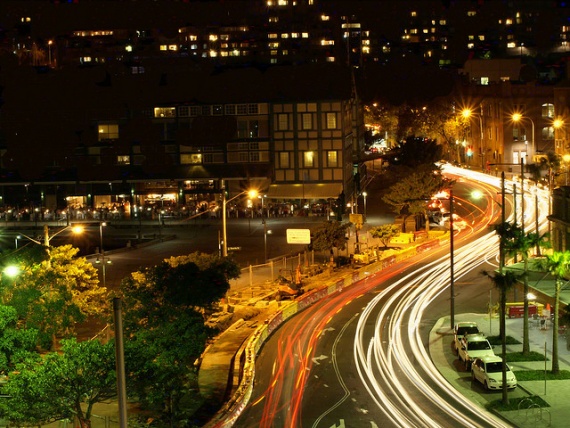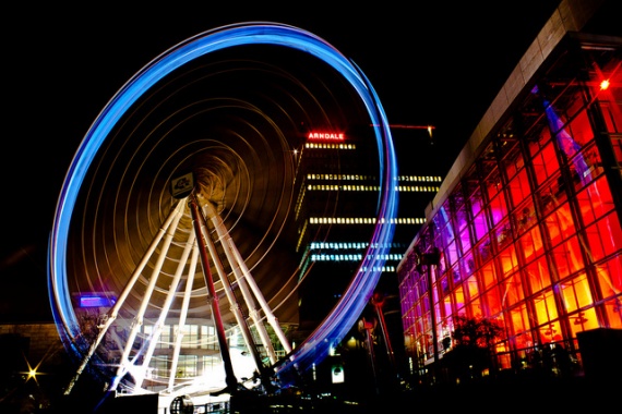 Кроме статических источников света, есть также и двигающиеся, благодаря которым создаются удивительные фотографии, завораживающие глаз. Машины, поезда, автобусы, трамваи и даже колеса обозрения вполне могут быть использованы для создания интересных и красочных фотографий. Используя режим “Shutter Priority”, вы сами выставляете длительность выдержки, и чем она больше, тем сильнее получаются эффект размытости движущихся источников освещения. Дабы добиться именно такого эффекта, какого я хочу, я обычно считаю, сколько времени требуется предмету, чтобы поменять свое положение в пространстве и как сильно оно меняется за определенный промежуток времени. Однако со всеми этими настройками, временем и оборудованием, нужно постараться не забыть и о композиции, ведь она играет чуть ли не ключевую роль при ночной фотографии. Поэтому после того, как вы все настроили и приготовили, просто оглянитесь вокруг, посмотрите на окружающие вас постройки и монументы, а затем мысленно прикиньте, как можно все это использовать для создания отличного снимка.