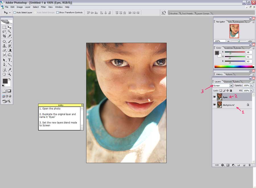 2. Сделайте дубликат оригинального слоя и назовите его «Eyes» (ну это чисто для удобства :)