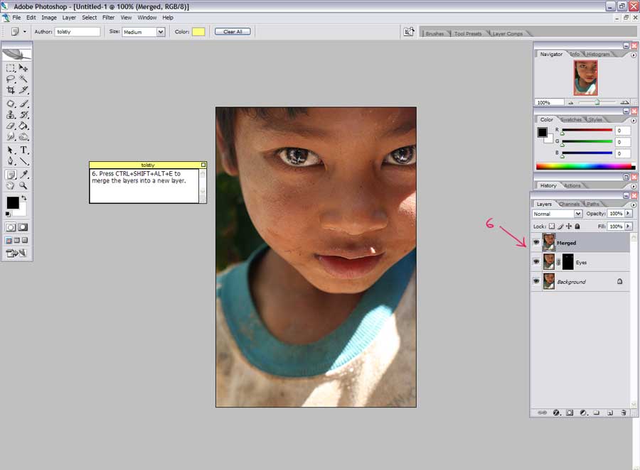 10. Снова нажмите CTRL+SHIFT+ALT+E чтобы объединить слои.