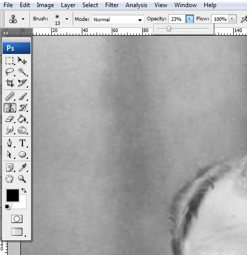 Ну и наконец, приступим к уроку. На первом шаге я уже определился с размером и обрезал изображение. Дальше начинается процесс восстановления. С фотографиями вроде этой, я всегда начинаю с инструмента «Заплатка» (Patch) и использую его достаточно грубо и массированно. Далее я уточняю детали с помощью «Заплатки», «Лечащей кисти» (Healing tool), и «Клонирующего штампа» (Clone Stamp Tool). С этим мы разберемся поподробнее на следующем этапе.