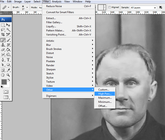 После удаления шумов мы переходим к увеличению резкости. Увеличение резкости — это отдельная большая тема, но обычно хороший результат дает High Pass Sharpening. Когда вы будете применять его, вам наверняка захочется сделать это с минимально возможными настройками.