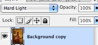 Далее применим фильтр Фильтр > Размытие > Размытие по Гауссу (Filter > Blur > Gaussian Blur). Радиус ставим 6.4. Меняем режим смешивания на Жесткий свет (Hard Light).