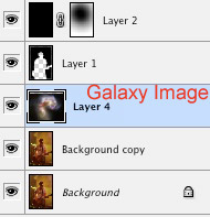 Найдите какую-нибудь картинку с изображением галактики, звездного неба. Как только вы нашли нужную картинку, вставляйте ее под слой с черным контуром объекта. Должно получиться что-то вроде такого: