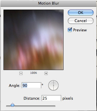 Повторите предыдущий шаг, но с прозрачностью 80%. Затем идите в Фильтр > Размытие > Размытие в движении (Filter> Blur > Motion Blur) и поставьте смещение на 25.