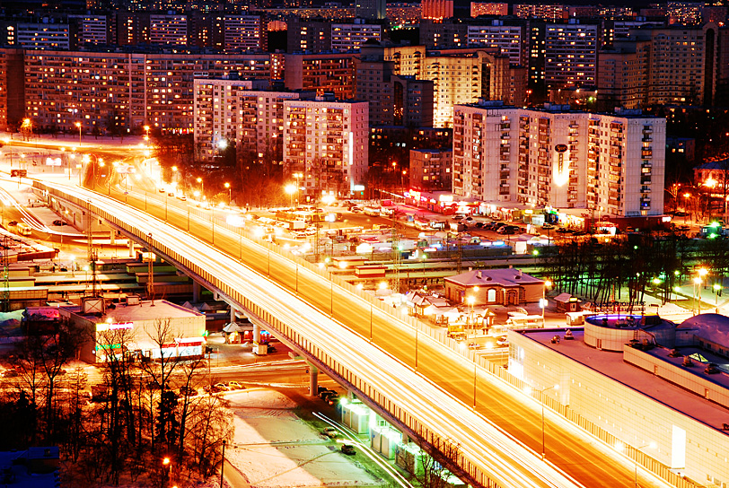 Попробую поделиться опытом и на какую либо уникальность своих знаний не претендую, надеюсь, кому ни будь пригодиться. Вообще ночной город смотрится более чище из-за того, что весь мусор и грязь тает в тенях. А контрастное разноцветное освещение и подсветка зданий словно вырывает из темноты здания и дороги. В чем же особенность съемки ночью? Все дело в том, что при съемке днем мы оперируем, как правило, одним источником света — солнце, которое настолько ярко светит, что многократно переотражается и от поверхности и от неба, и от всего подряд, создавая тем самым привычное нам по контрасту и интенсивности освещение. Ночью же дела обстоят совсем по-другому, за место одного мощного источника мы имеем много маломощных, которые подчас тут же и поглощаются своим окружением. Иными словами ночное освещение имеет колоссальный контраст и обычные методы экспозамера здесь не пригодны. Страшно? Ни чего сложного. Вот именно поэтому, для снижения контрастности, рекомендуется снимать не глухой ночью, а вечером, когда небо еще подсвечивается солнцем, уже скрывшемся за горизонтом. Вечерние небо и на снимках смотрится эффектнее и снижает общий контраст. Для меня, к примеру идеальным временем съемки ночных пейзажей является время начиная с включения мачт городского освещения и еще час-полтора.
