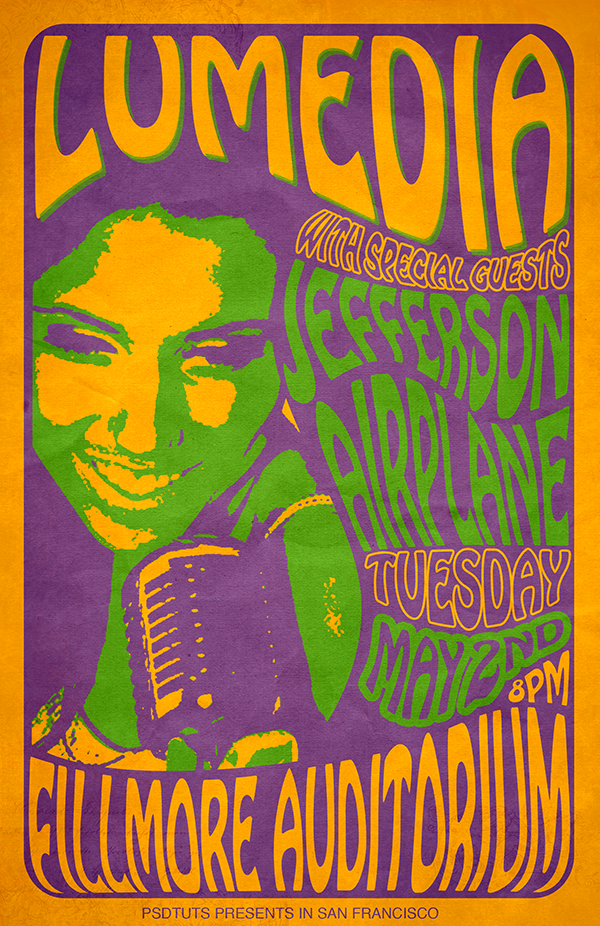 Урок описывает технику создания постера 60-х годов в стиле "psychedelic".