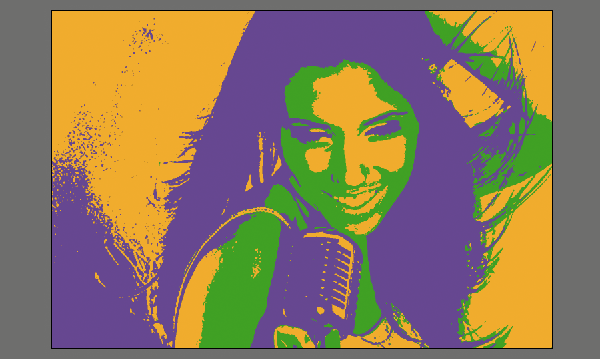 Заливаем слой с женщиной самым светлым цветом, используемым в нашем постере (у меня это оранжевый). Загружаем выделение, держа Ctrl, кликнув на созданной нами копии канала. Создаем новый слой и заливаем выделение вторым цветом, используемым в нашем постере. То же самое проделываем со вторым выделением, заливаем его третьим цветом. Теперь на каждом из трех слоев применяем Image>Adjustments>Threshold. Перетаскиваем маркер до тех пор, пока изображение не станет более детальным.