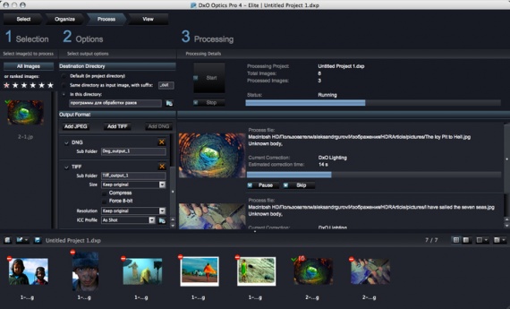 Преимущество DxO Optics — в результатах пакетной обработки. Создатели программы уделили особое внимание автоматическим функциям, позволяющим добиться качественного результата без участия пользователя (устранение оптических искажений, параметры цвета, экспокоррекция).