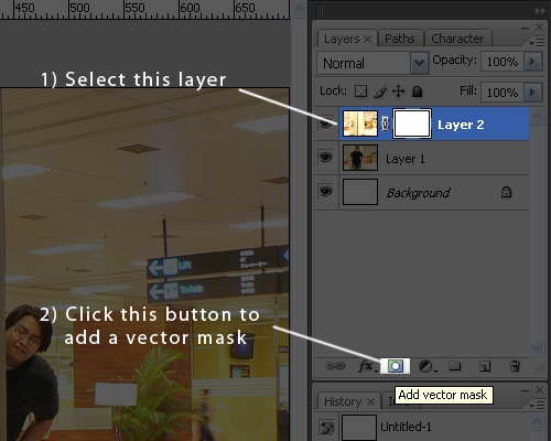 Теперь, Вы можете щелкнуть правой кнопкой мыши на верхнем слое и нажать, Enable Layer Mask, чтобы увидеть прогресс.