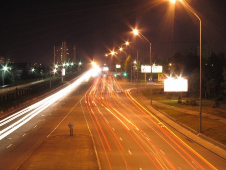 Еще одна из интересных особенностей ночных съемок, это фотографирование движущихся светящихся объектов. После них всегда остаются светлые полосы в кадре. К примеру на этом фото изображены: слева — фары машин (белые полосы), справа — стоп огни (красные полосы). Здесь использовалась выдержка в 15 секунд, за это время проехало много машин, поэтому и столько полос. Основные идеи выложены здесь, я всего лишь подредактировал и немного дополнил)
