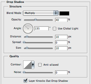Шаг 2. Этот шаг покажет какие настройки надо применить к Layer Style (стилю слоя). Что бы открыть окно с опциями слоя в Layer Palette(политре слоев) два раза кликните на слой или Layer > Layer Style > Blending Options… Drop Shadow: