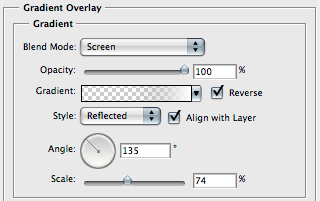 Теперь мы собираемся изменить нашу черную форму в блик с помощью настроек стиля слоя. Только Gradient Overlay:
