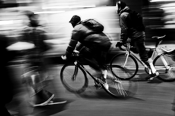 Возвращаясь к примеру с поездом, представим мужчину на велосипеде, едущего с востока на запад. В этом случае вы должны провести камеру в том же направлении, согласуя скорость движения ваших рук со скоростью движения велосипеда. Лучше всего получится, если вы четко видете движение объекта и имеете достаточно места, что бы сдвигать камеру по парралельной к нему оси.