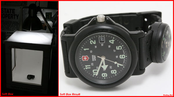 Есть много вариантов получить нужное Вам фото. Если у Вас проблемы с тенью, я советую дополнительно подсветить коробку с боков. Если Вы получаете виньетку, то переместите фотоаппарат дальше в коробку, или прикройте диафрагму. Также можно исправить все это при помощи Photoshop. Так как у меня не самые чистые линзы и камера то я стараюсь убрать пыль в Photoshop. Я также использую уровни для увеличения яркости.