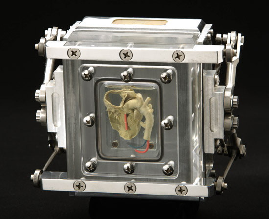 Алюминий, титан, акрил, формальдегид, детское человеческое сердце. Снимки: