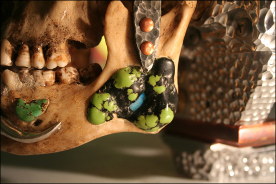 Камера сделана из алюминия, титана, латуни, драгоценных камней и стопятидесятилетнего черепа тринадцатилетней девочки… Чёрт побери, только представьте, что у вас в руках такая штука. Или хотя бы сделанный ею снимок. Дух захватывает. Технически эта камера — безоптическая, т.е. пинхол. В черепе просверлена дырочка, через которую и попадает свет. Размер фотопластинки — 4 на 5 дюймов. Снимки выходят вот такие:
