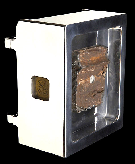 «Сыны Авраама (9/11)». Камера сделана из алюминиевого блока самолёта, потерпевшего авиакатастрофу, куска стальной арматуры от южной башни WTC, обрывка страницы Библии 1860 года, обрывка страницы Корана 1960 года и обрывка страницы Торы 1880 года.