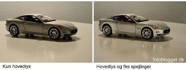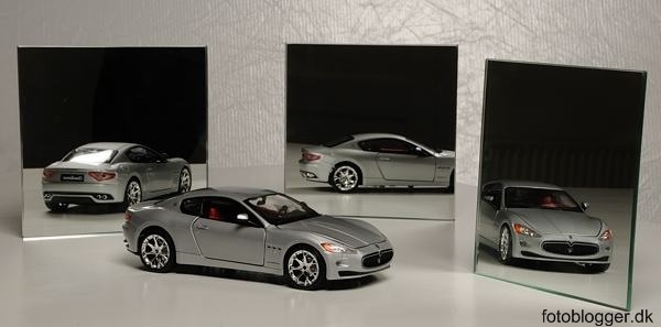 Однажды, мне довелось увидеть одно замечательное видео, в котором один профессиональный фотограф использовал студийное освещение и зеркала, чтобы осветить объект. Это вдохновило меня на похожий эксперимент и вот что из этого вышло: Я немедленно посетил магазины DYI и Toys R’Us и стал счастливым обладателем 4ех зеркал (15х15 см) и небольшой игрушечной модели машины. Это может показаться странным, но мне пришлось поломать голову при выборе "машины". В конце концов я остановился на модели Maserati GranTurismo.