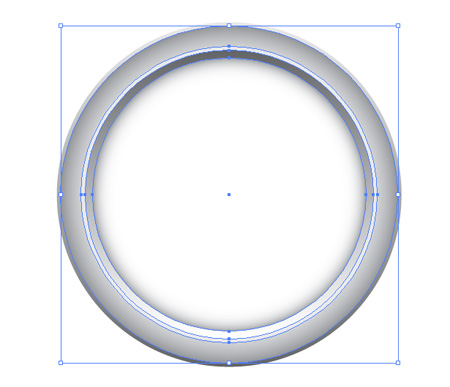 Вставим ещё один круг, на этот раз линейный градиент от серого к белому, и отступление еще меньше, чем в предыдущем случае..
