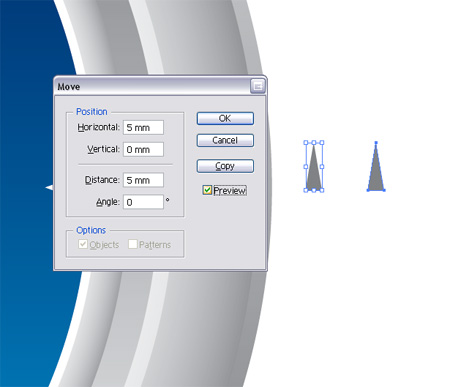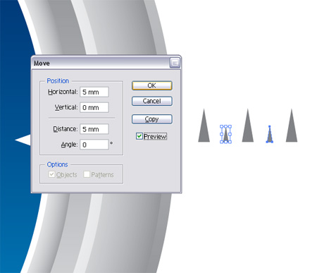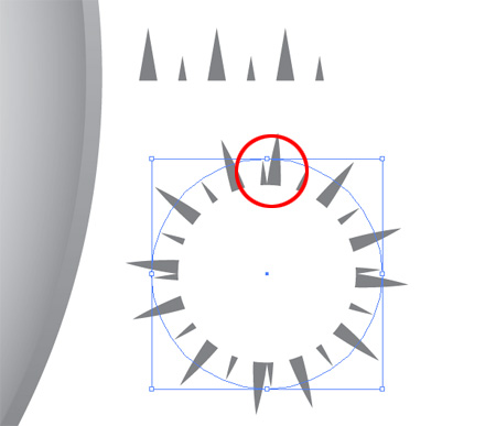 Вокруг оригинальной иконки Сафари есть возрастающие треугольники, которые указывают градусы по всей окружности компаса. Воссоздадим этот образец, скопировав треугольники и сместив их.