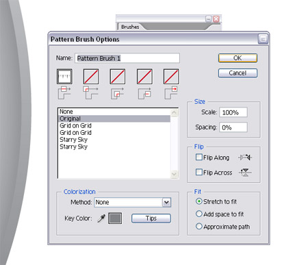 Теперь в создании образца выберем группу треугольников и повернем пока они не будут указывать вниз. Потом создадим новую кисть в Brushes Palette.
