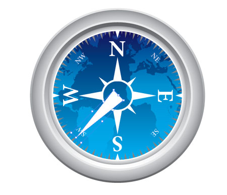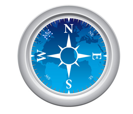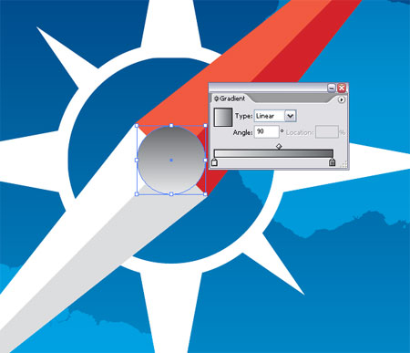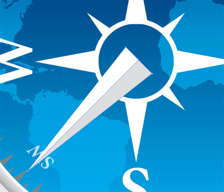 Тяните градиент от синего цвета к белому поперек компаса и установите этот уровень в Linear Burn на 35%, это помогает выделить цвет фона компаса.