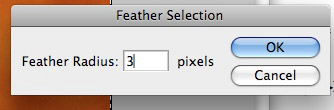 Идем в Выделение > Модификация > Feather (Select > Modify > Feather) или нажимаем Alt+ Ctrl+ D. Радиус растушевки ставим 3.