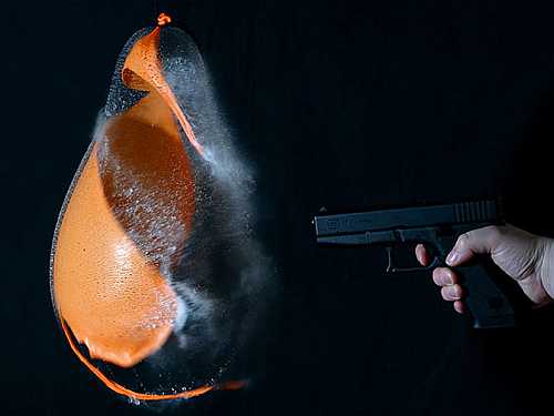 Как снимать фотографии вроде той, что вы видите здесь? Это бокал шампанского, в который выстрелили из пневматического пистолета. Подобную технику можно использовать и для других взрывающихся предметов, таких как помидоры, шарики с водой, арбузы, или даже ваш Canon, вдребезги разбивающийся об стенку за свое кривое меню (простите, вырвалось). Высокоскоростная съемка позволяет добиться потрясающих эффектов. Ее используют в физике, медицине, спорте и многих других областях. Эта статья расскажет о том, как заснять очень быстрое движение на обычную камеру в комбинации с небольшими электронными хитростями. Я так же расскажу про настройки, которые я использовал, с какими проблемами столкнулся и к каким хитростям прибег, чтобы обойти их.