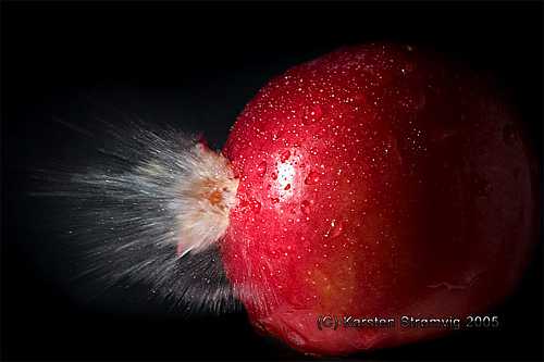 Съемка подобных картин включает в себя много тонкостей и проблем. Как можно успеть заснять какой-то момент, длящийся менее 1/6000 секунды!? Для этого мы должны синхронизировать щелчок затвора и вспышку камеры с определенным временем. Но затвор любой нормальной камеры закрывается так долго, что просто невозможно попасть в нужную секунду. И как синхронизировать вспышку с настолько короткой экспозицией?