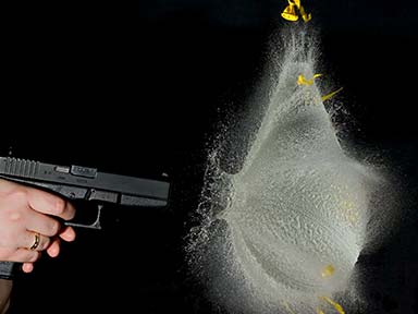 Так же можно просто заполнить воздушный шар водой и выстрелить в него из страйкбольного пистолета :-)