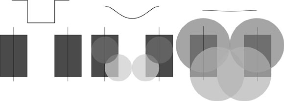 муар, если бы дифракция "размыла" штрихи, его образующие).