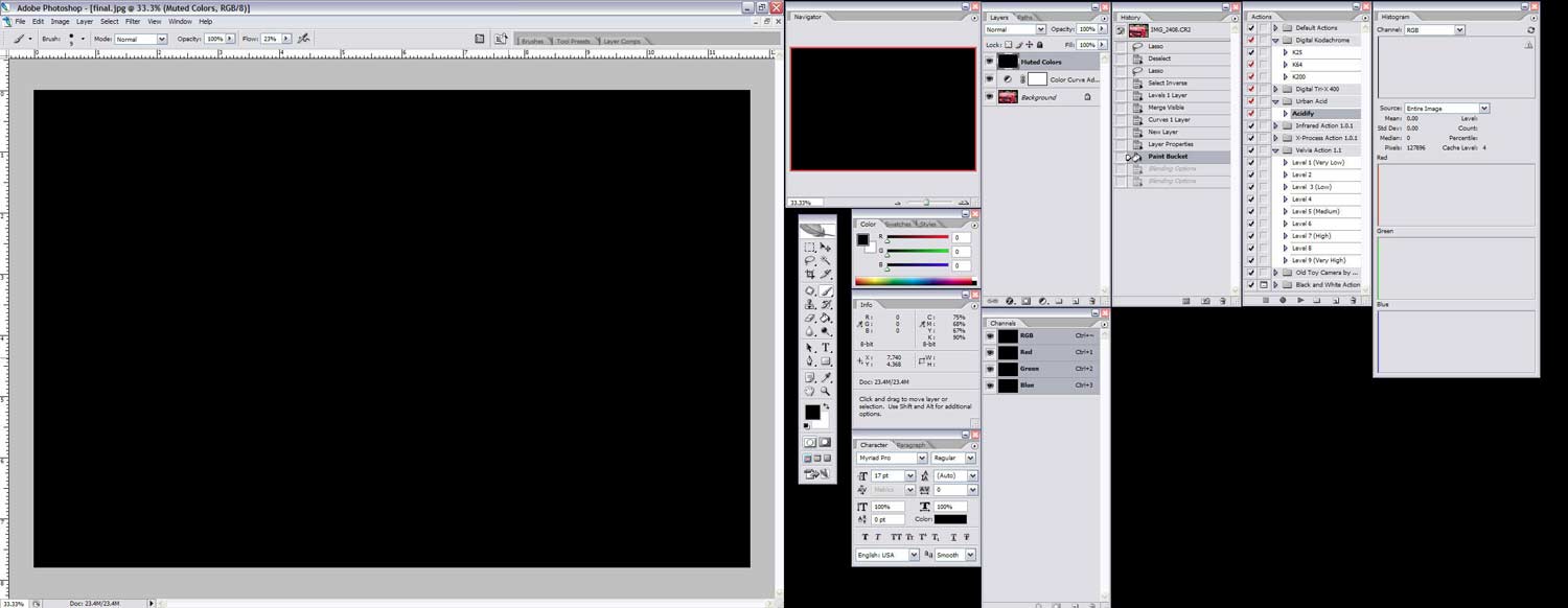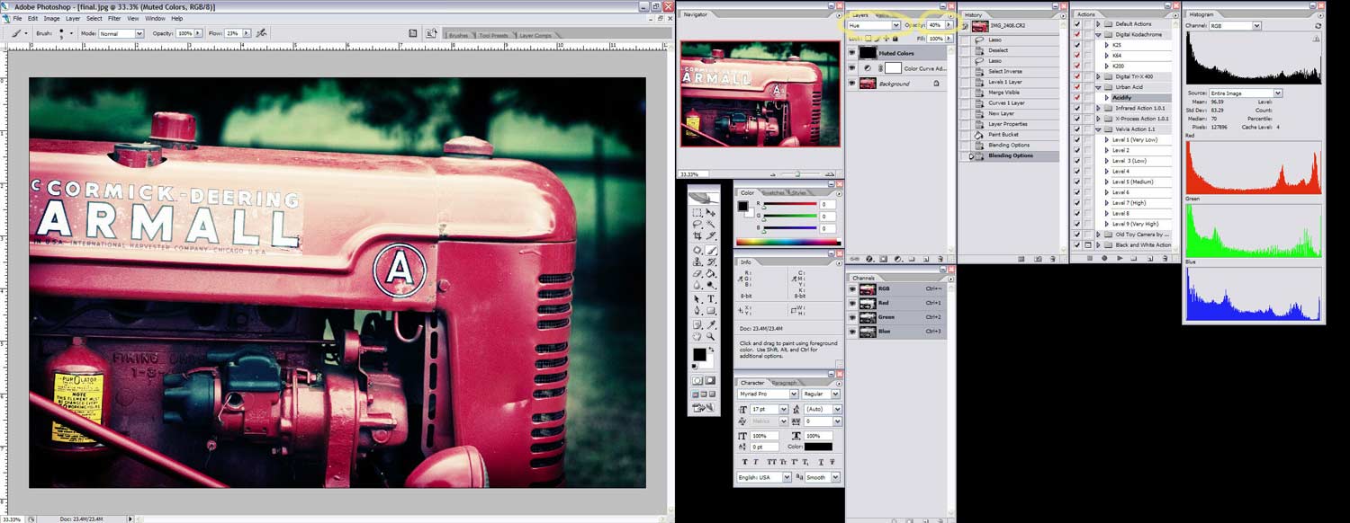 Здесь пошагово описано, как я делаю цифровое фото и впоследствии стилизую его под ломографию. Сразу хочу посоветовать вам записать последовательность действий в макрос, это сэкономит вам кучу времени.